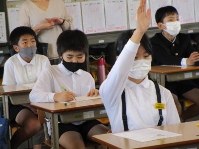 午後からは4年生の研究授業。たくさんの先生方に見守られる中、しっかりと考え、意見発表も堂々としていました。