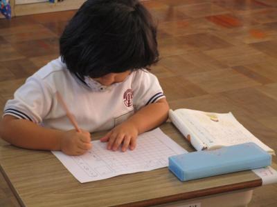 3年生のローマ字。「ねこ」という文字などをローマ字に直していました。う~ん、と思い出しながら解いていました。一生懸命さがいいです。