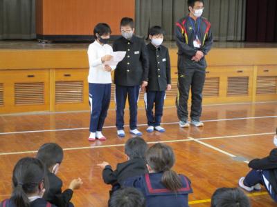 最後に、来年度のリーダーの5年生が入ってきました。しっかりとした声で言葉が言えました。