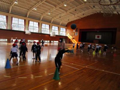 各学級での学習での様子です。1年生はボールを使って、キャッチしたり投げたりする運動にチャレンジしていました。