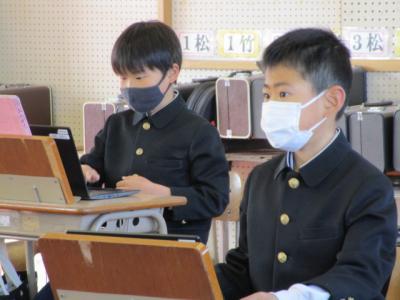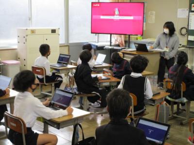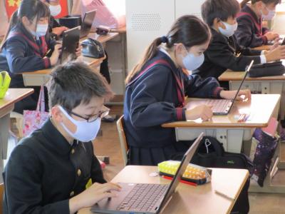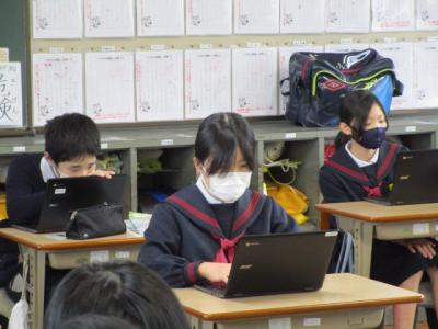 クロームブックを使い、班の考えをまとめていました。これからの時代は、「正解は一つではない。理由を明らかにして、自分たちの考えをまとめ、説明していく力が大切」と言われています。そのような学習に取り組んでいました。