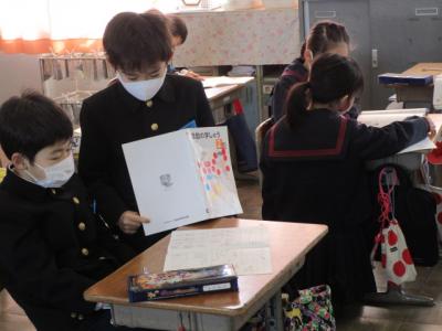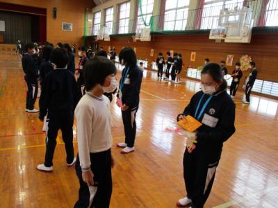 2年生は「しおり」を渡しました。渡す2年生も、もらう6年生も、にっこり笑顔でした!(^^)!