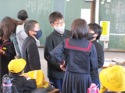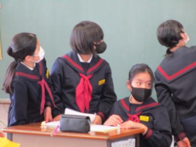 昨日の縦割り班掃除の後、送別遠足の歩いていく時の並び方などを話し合いました。