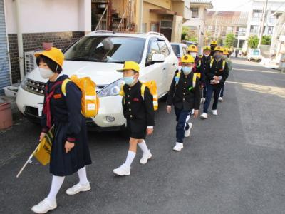 新班長さんが集団下校の先頭で、しっかりと歩いていました。責任感ある顔を頼もしく感じました!新班長さん、よろしくお願いします。