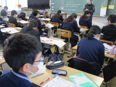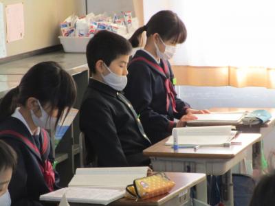 いろいろな学習を頑張っています。友達と教え合ったり、相談したりすると、学力はグンと伸びます。そして、友達と話し合うと、『新しいアイデア』も生まれたりもします。今年度は、残り1か月です。友達のよさをたくさん見付けながら、友達の輪を広げ、みんなで力を伸ばす1か月にしていきましょう!