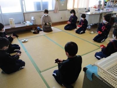 1年生の音楽。「さんぽ」の歌を、歩きながら歌ったりしていました。