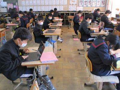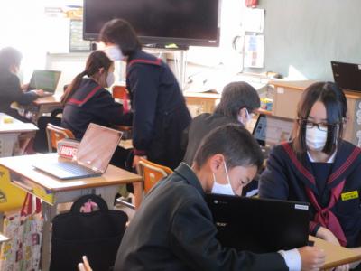今日の学習の様子です。クロームブックでのクイズ。一生懸命に解いていました。