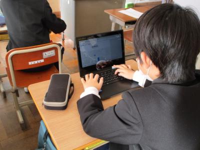 クロームブックで先生から出された漢字の問題を解いていた5年生。真剣な表情がとってもいいです。