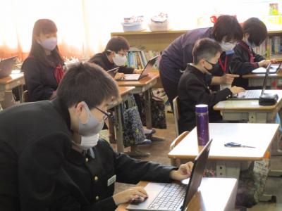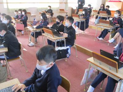 今日の学習の様子です。3年生は音楽の授業でクロームブックを活用していました。鑑賞した後の感想を書いていました。