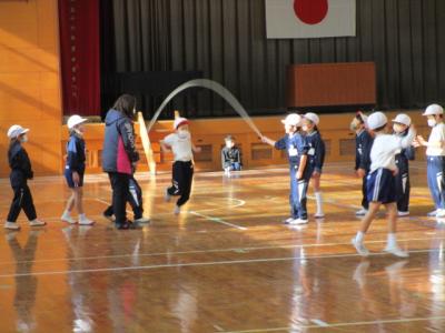 体育館で縄跳びをしている4年生。どんどん上手になっています。