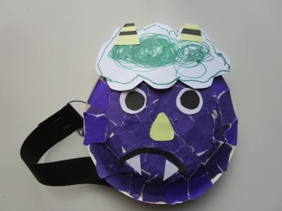 2月と言えば。節分。青オニさんのお面を上手に作っていました。
