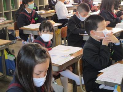 立春を過ぎましたが、吹く風は冷たく寒さを感じる一日でした。子どもたちは寒さに負けず元気です。2年生は国語で詩を作り、イラストも描いて丁寧に仕上げていました。