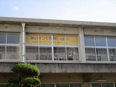 保健体育委員会の子は、マンダリンパイレーツからいただいた「あいさつ」の横断幕を、見える位置に貼ってくれていました。