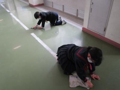 生活委員会の子は、廊下の中央線のテープを丁寧に貼ってくれていました。