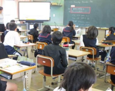 外国語の授業。4年生ですが、しっかりと発音できていました。