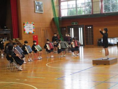 6年生の二部合唱「あすという日が」合奏「コンドルは飛んでいく」です。