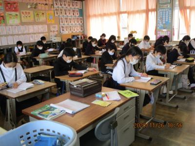 早いもので11月の最終日。明日からは12月です。まとめのテスト等も行っていきます。学習面においても、生活面においても、いい締めくくりとなるようにご家庭での声掛けもお願いします。