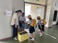 今朝、JRC委員会の皆さんがエコキャップ集めを行いました。ペットボトルのキャップを集めて、キャップ860個でポリオワクチン一人分となります。世界の子どもたちの命を救うために中之庄小学校が永年取り組んでいる活動、今年度も全校みんなで協力します。