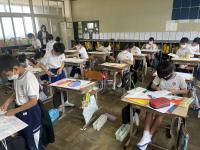 担任の先生から受検の注意を聞き、国語と算数の問題にチャレンジしました。