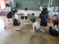 今日は新しい学年になって初めての縦割り清掃でした。高学年の子が低学年の子に道具の使い方を優しく教えたり、自分の担当場所を一生懸命拭いたり掃いたりする姿が見られました。