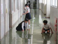 各教室から全校児童が運動場へ避難完了するまでにかかった時間は、「3分9秒」でした。一人一人が「お・は・し・も・ち」の約束を意識して、しっかり避難できていました。